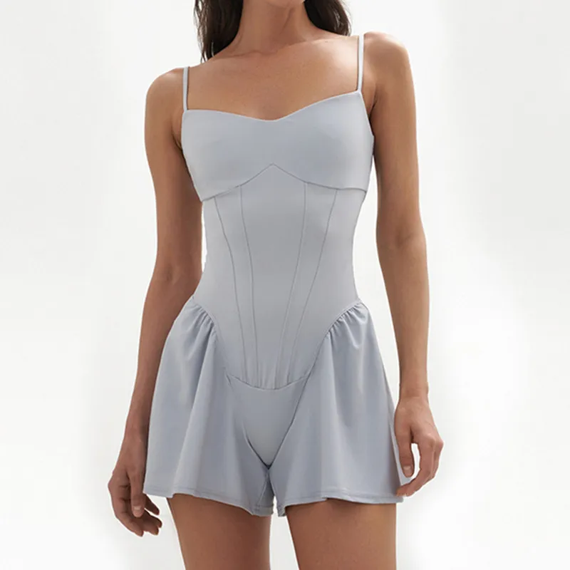 Wide-Leg A-Line Fitness Romper with Suspenders