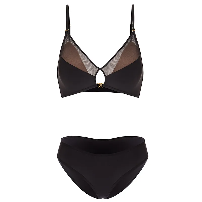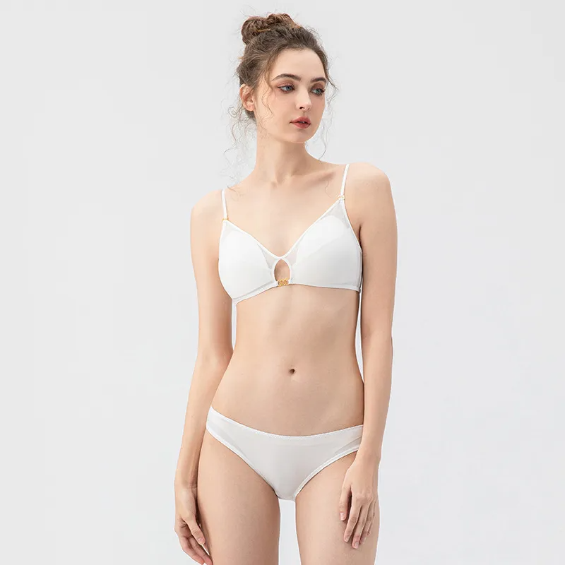 • The Zyra BareBloom Set blends simplicity with undeniable allure. Crafted from breathable cotton, this lightweight bra and panty set features a triangle cup with a thin molded shape for a natural, effortless lift. The detachable double shoulder straps and beautiful back design make it perfect for low-back outfits, while the rear single-row buckle keeps the fit secure and sleek. A simple, casual style with a touch of boldness.