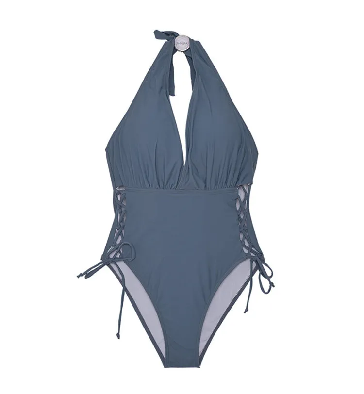 Women’s Solid Color Backless Halter Neck One-Piece Swimwear, a timeless and elegant addition to your summer wardrobe: