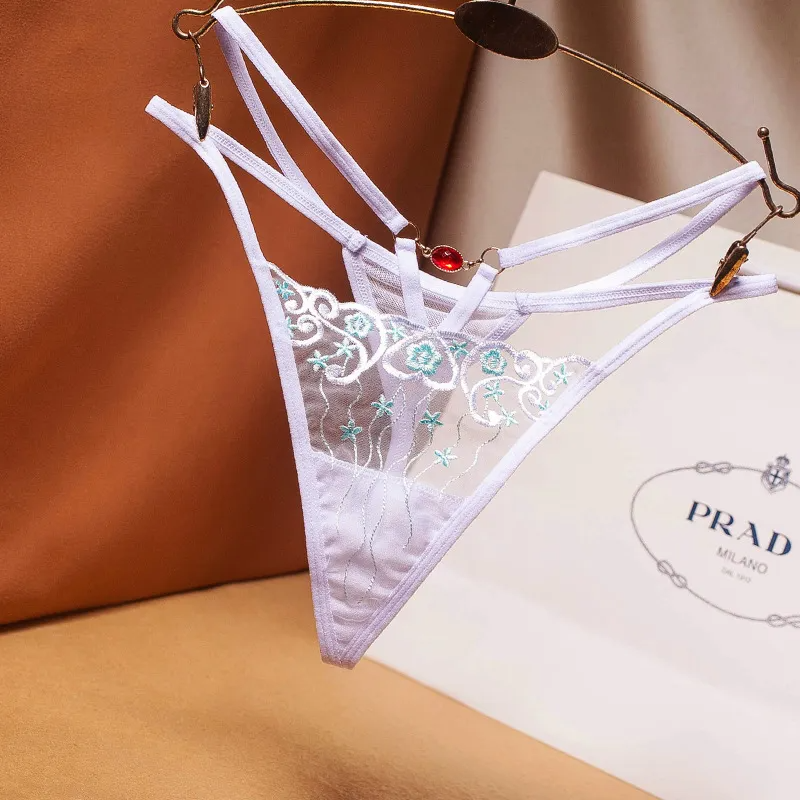 Embroidered Sheer Mesh Thong