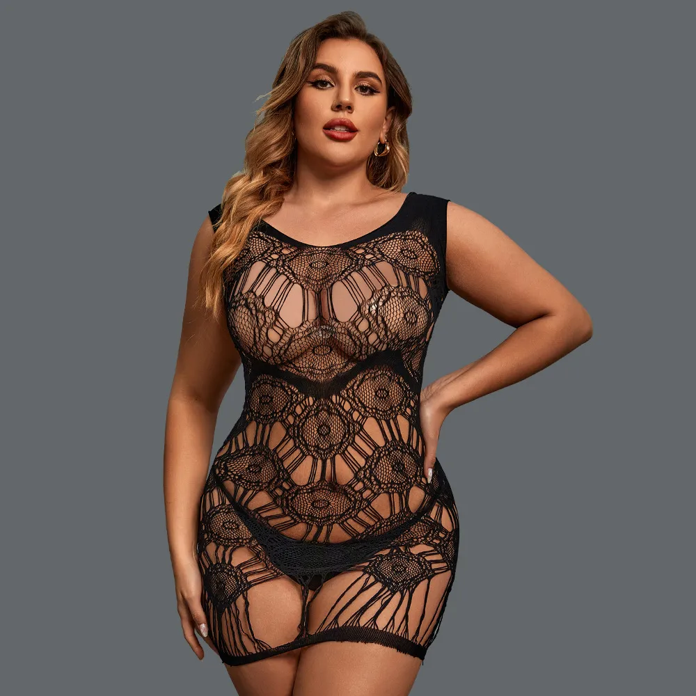 Women’s Fashion Sexy Plus Size Jacquard Hollow See-Through Tight Lingerie, designed to exude elegance and boldness: