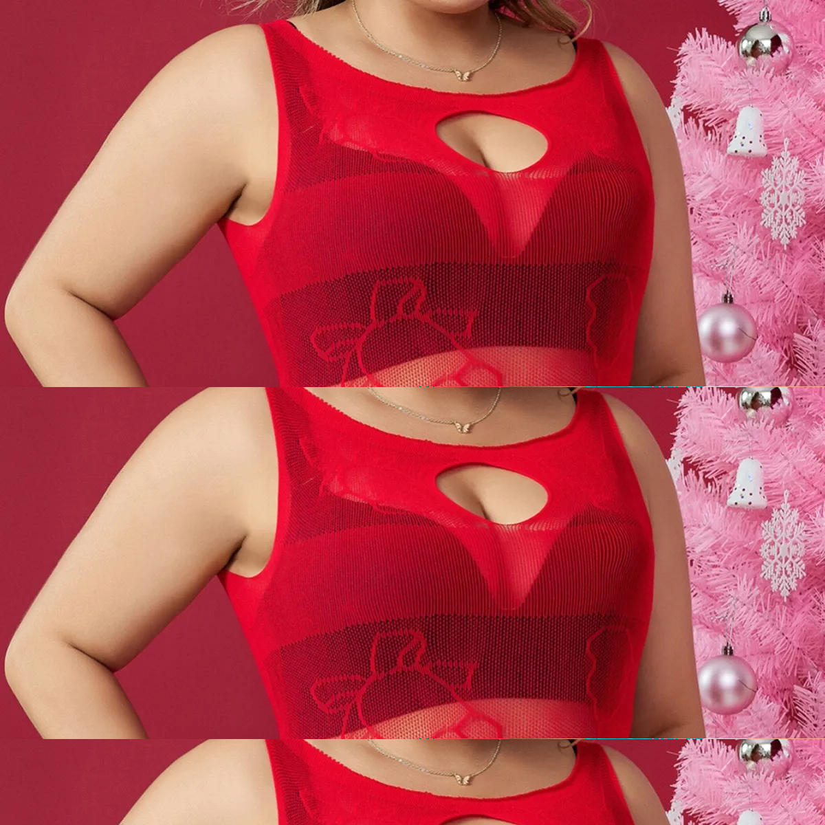 Women’s Fashion Sexy Plus Size Perspective Christmas Bell Rompers Lingerie, a festive and sultry addition to your holiday wardrobe:
